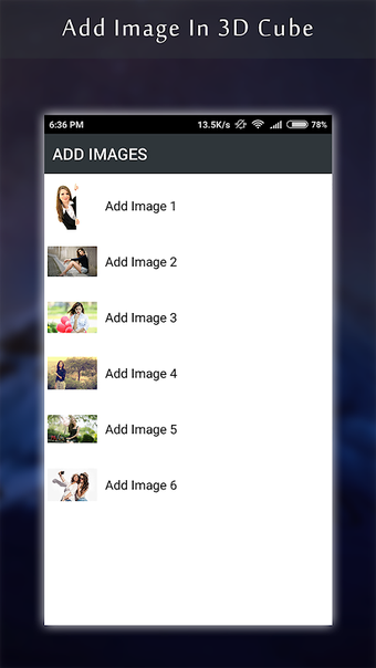 عندما تثبت التطبيق، يمكنك وضع صورك الخاصة في المكعبات. يمكنك اختيارها من معرض الصور الخاص بك أو يمكنك استخدام الكاميرا المدمجة لالتقاط الصور. يمكنك أيضًا تغيير لون خلفية المكعبات.